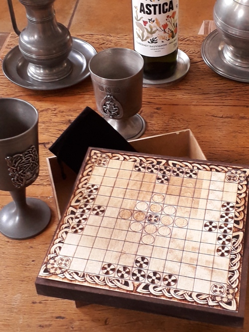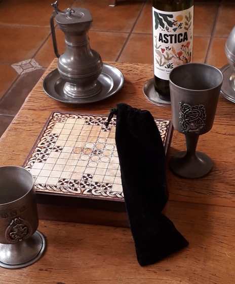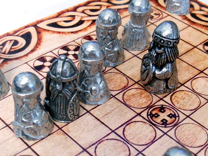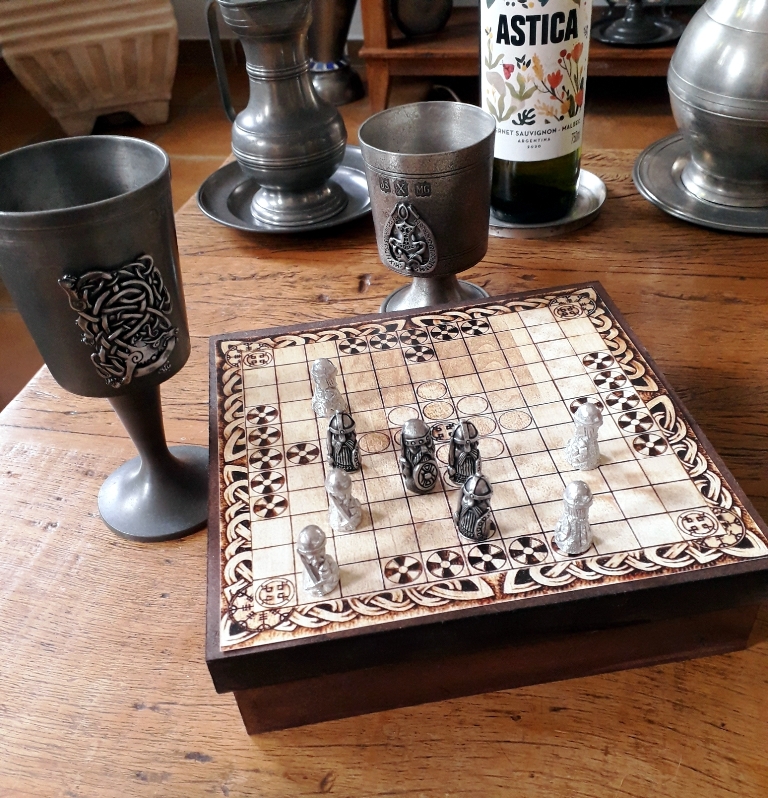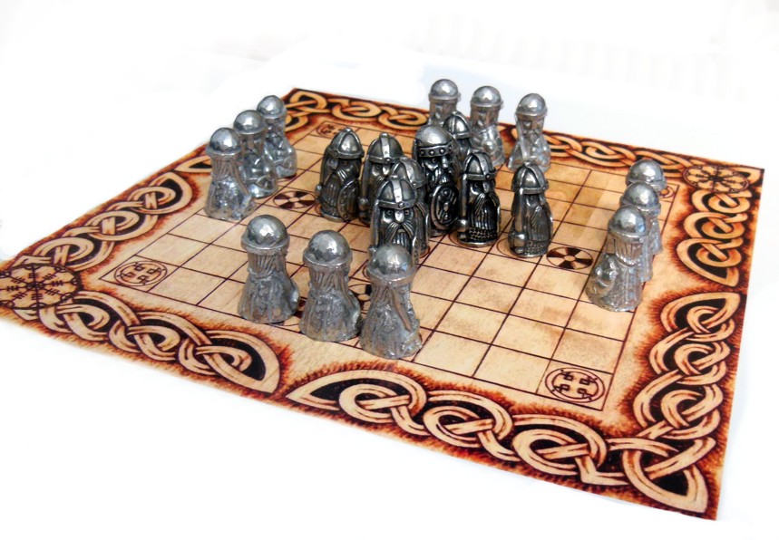 Percebam como esse jogo traz já na história de sua origem, uma bagagem cultural grande. E isso é muito sedutor. Um jogo com mais de 1500 anos… jogados por vikings, que se sentiam ociosos, enquanto navegavam em busca de pilhagens nas costas inglesas. É realmente muito empolgante.