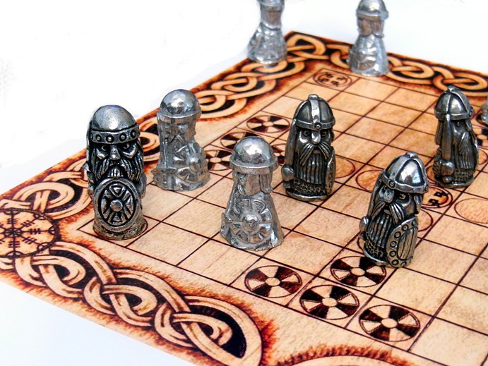 Só a disposição do tabuleiro preparado para a partida, já nos remonta às antigas incursões viking ao continente em busca de pilhagem.