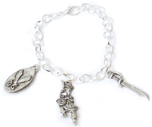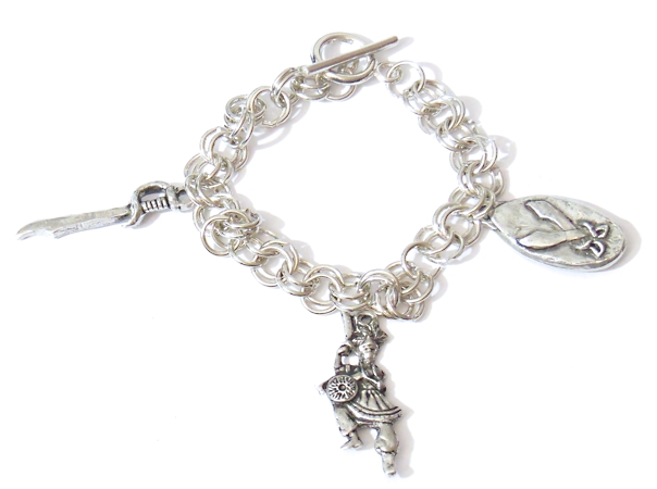 Os Imagens, símbolos e ferramentas montadas nas pulseiras e de estanho polido, e tem em media 25 mm de altura.